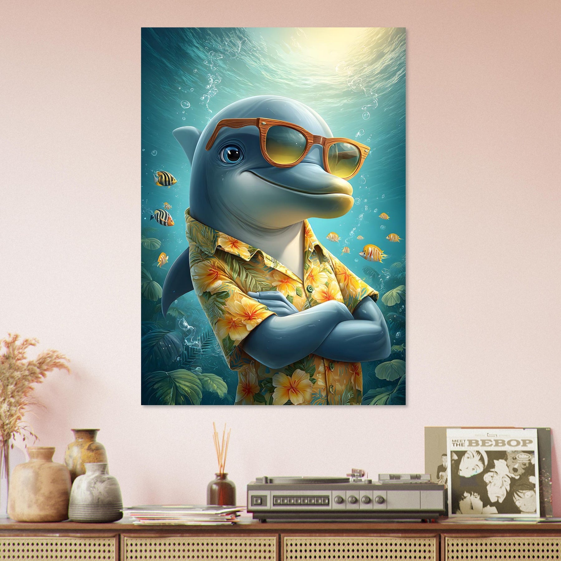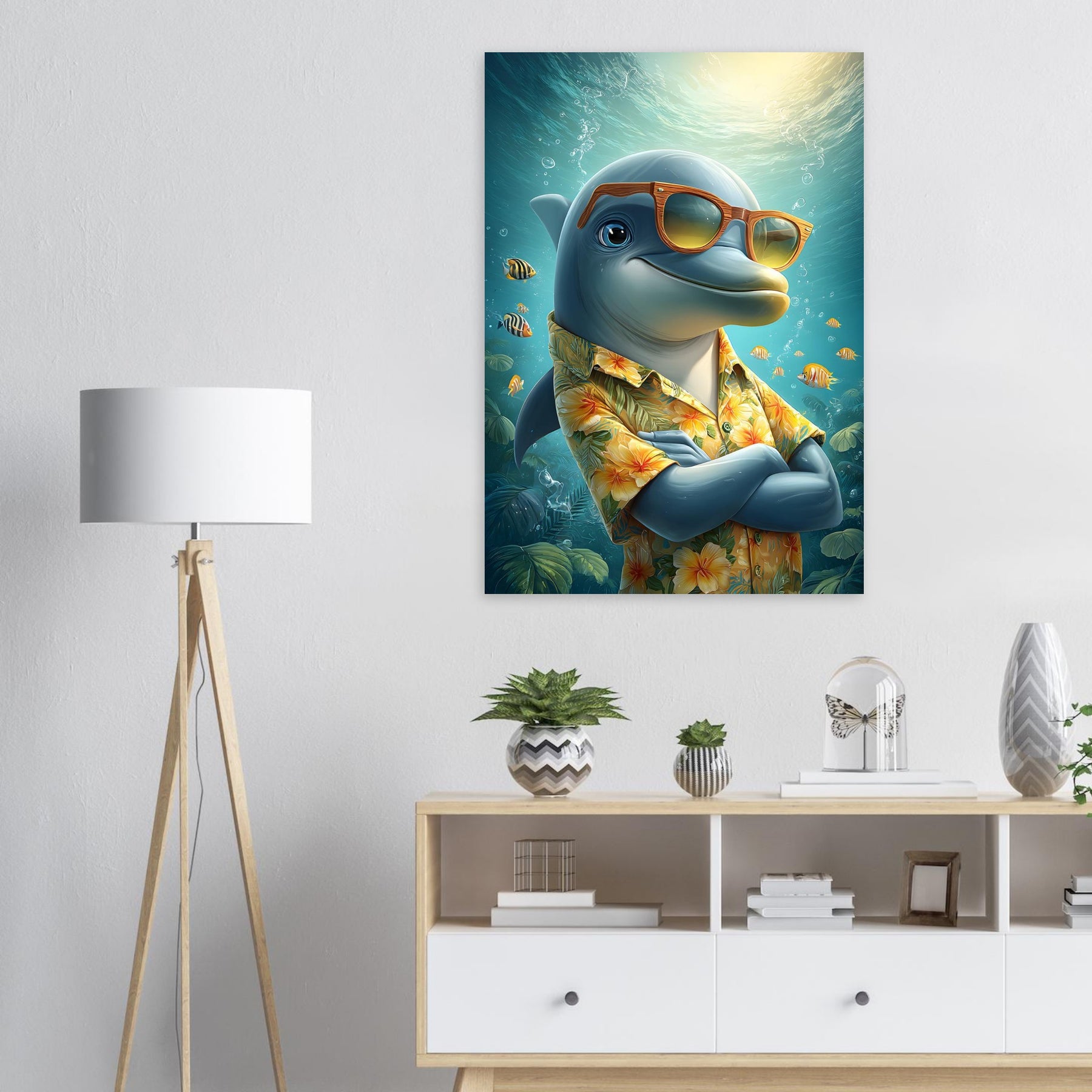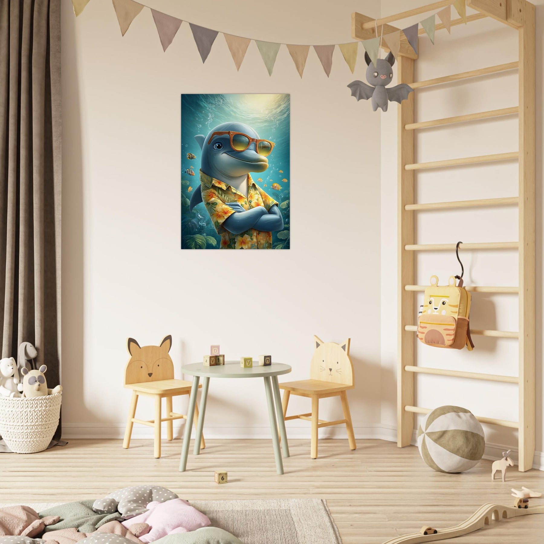 Make a splash of joy in your child’s room with our Cool Dolphin Adventure Aluminum Wall Art. This playful illustration features a charming dolphin rocking stylish sunglasses and a vibrant Hawaiian shirt, striking a confident pose underwater among colorful tropical fish and golden rays of sunlight. Bursting with fun, color, and adventure, this artwork captures the carefree spirit of the ocean and brings cheerful energy to any kid’s space.