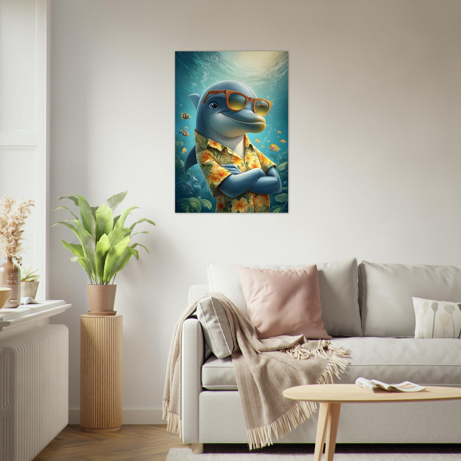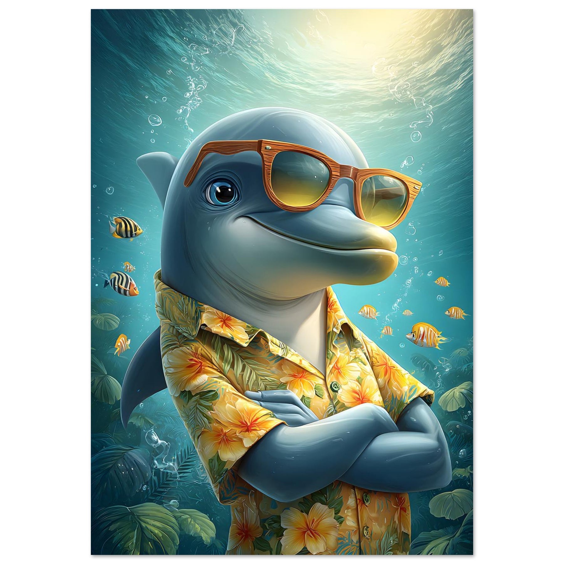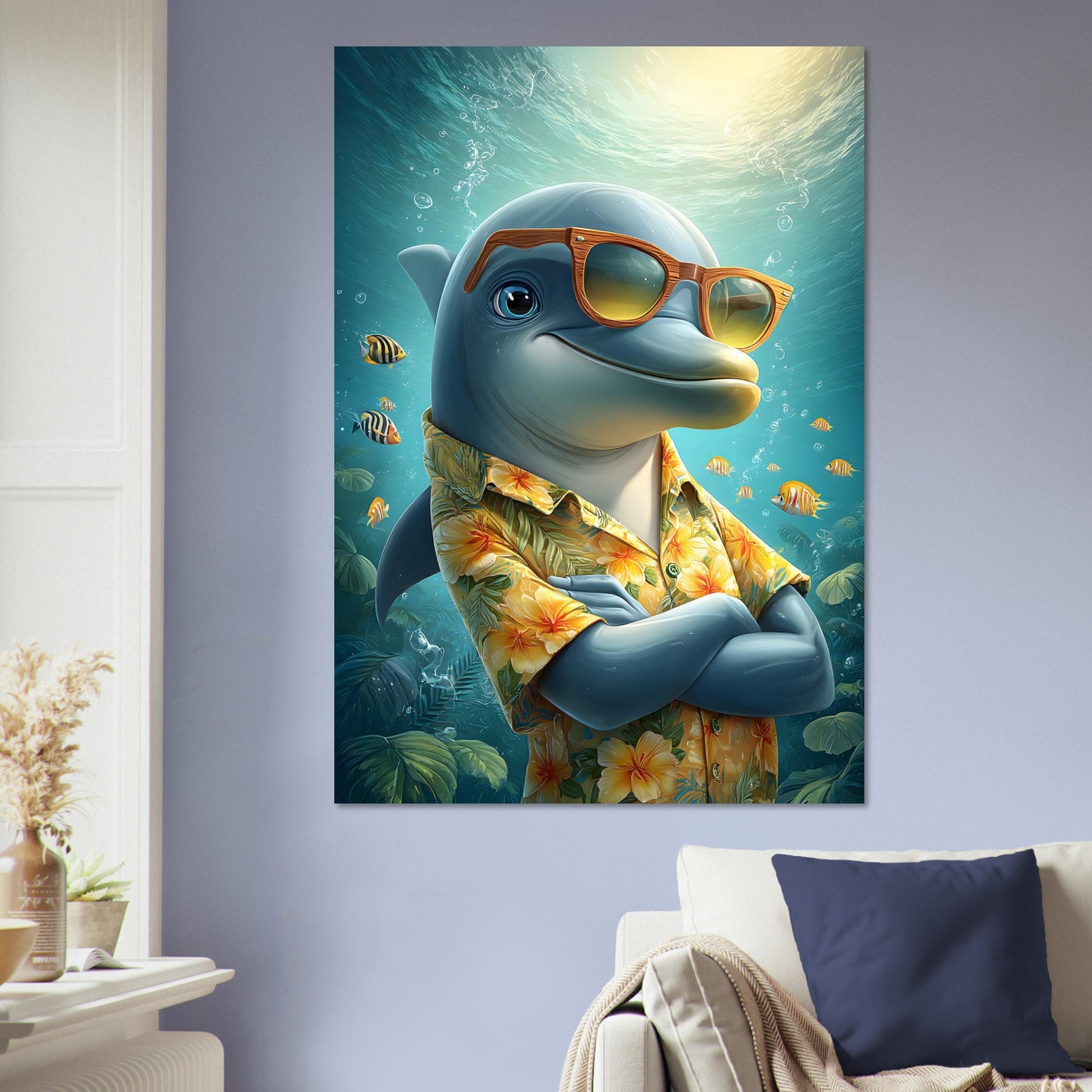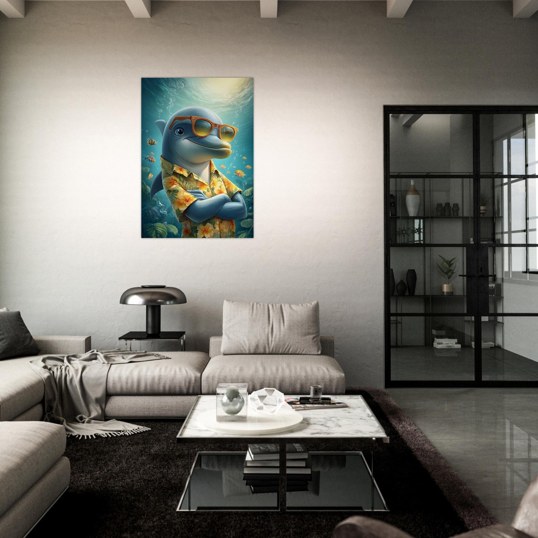 Make a splash of joy in your child’s room with our Cool Dolphin Adventure Aluminum Wall Art. This playful illustration features a charming dolphin rocking stylish sunglasses and a vibrant Hawaiian shirt, striking a confident pose underwater among colorful tropical fish and golden rays of sunlight. Bursting with fun, color, and adventure, this artwork captures the carefree spirit of the ocean and brings cheerful energy to any kid’s space.