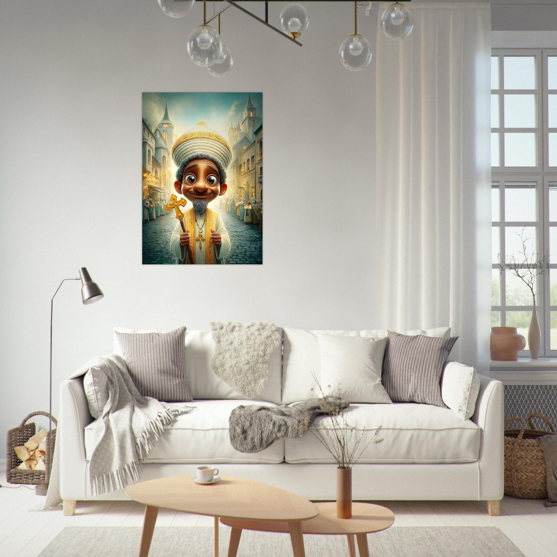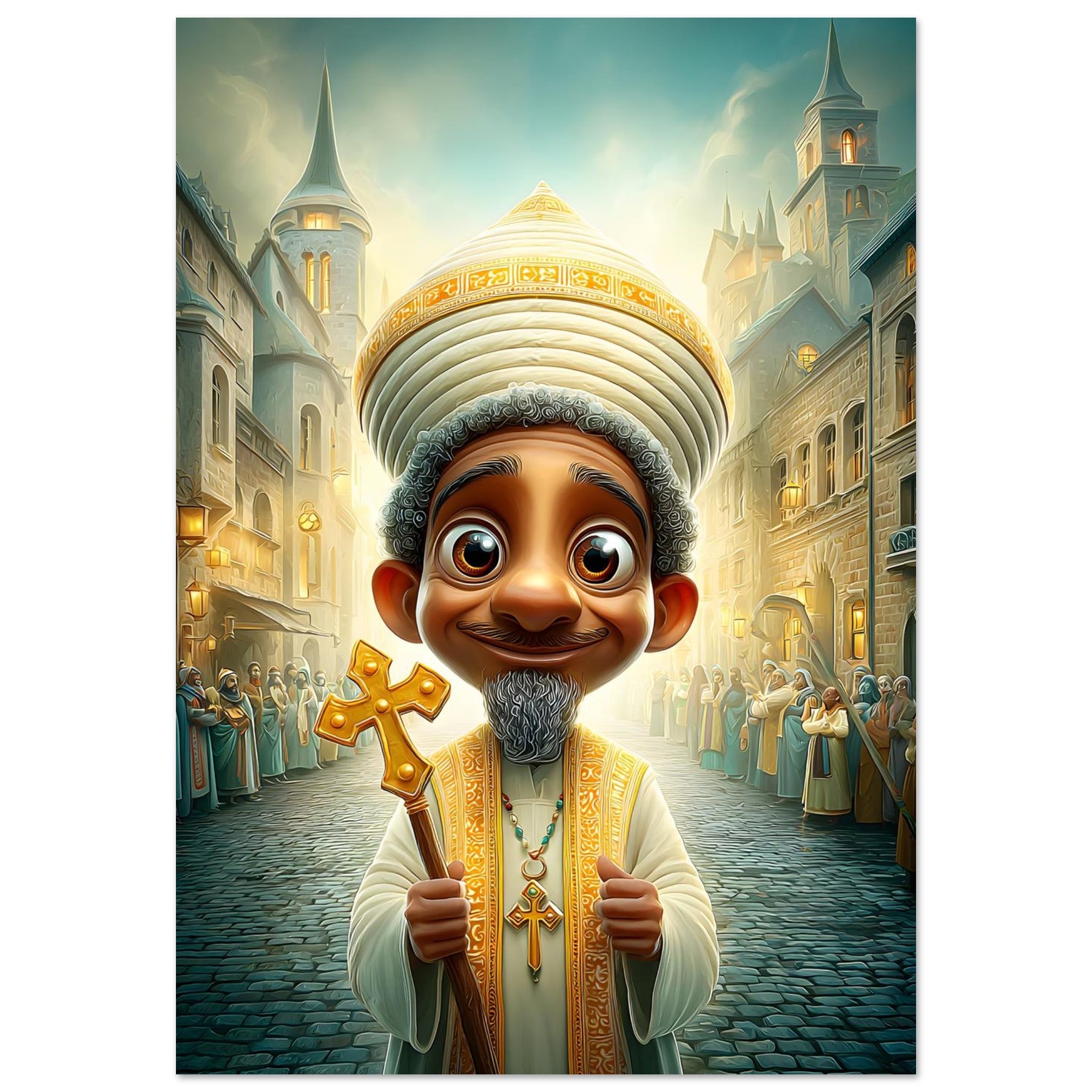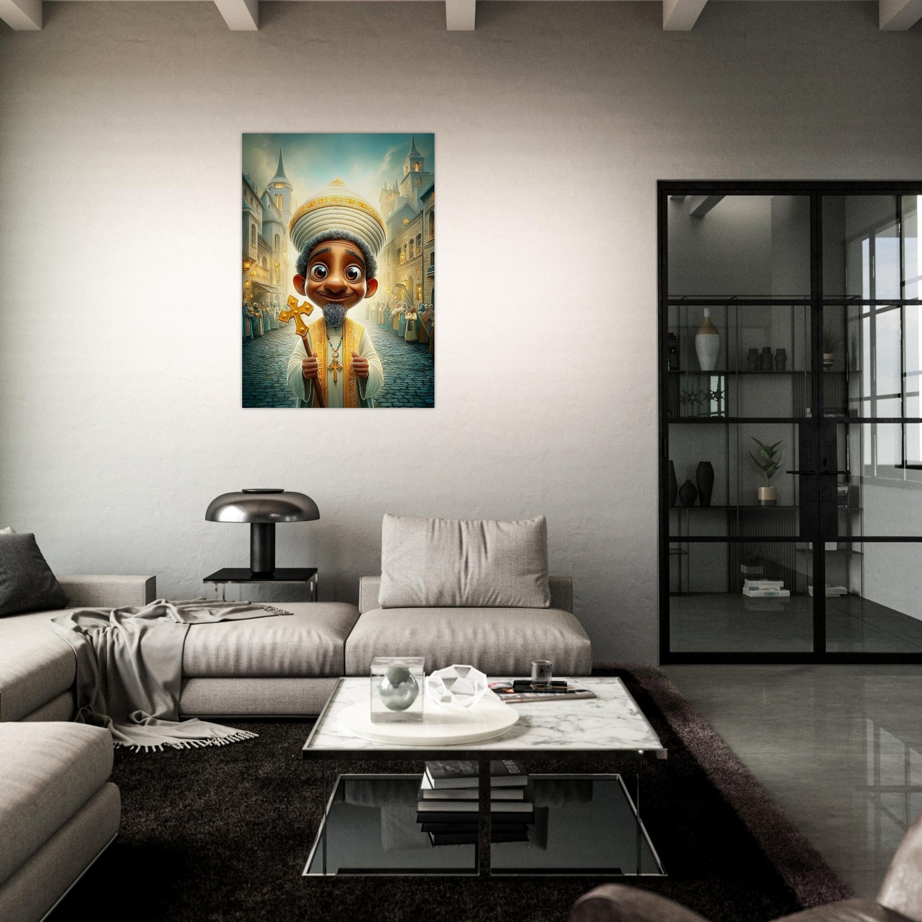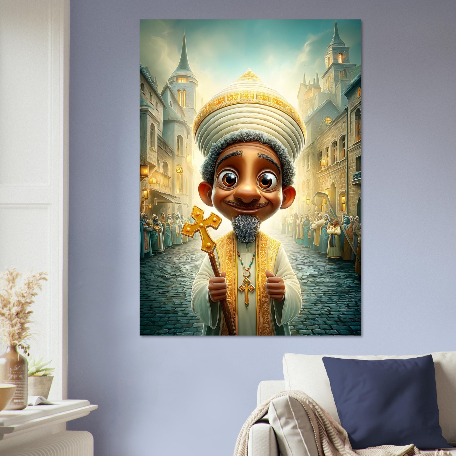 Bring culture, color, and charm to your child’s space with Heritage of Joy, a captivating aluminum wall art illustration featuring a whimsical Ethiopian man dressed in traditional robes. Standing proudly in an enchanting old town filled with intricate architecture and a lively crowd, this vibrant artwork celebrates history, identity, and the beauty of community.